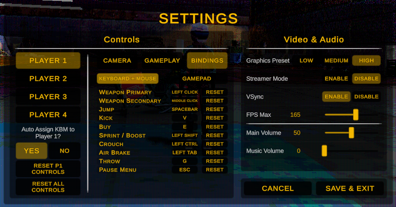 Hello airframers! This is Josh, one of the engineers/designers on the project. Since the last beta, we’ve been focusing on the design and functionality of some of the game’s core systems. By that, I’m referring to things like settings, gameplay loop, and progression. These are all super high level things, so let’s break them down a little, one by one!